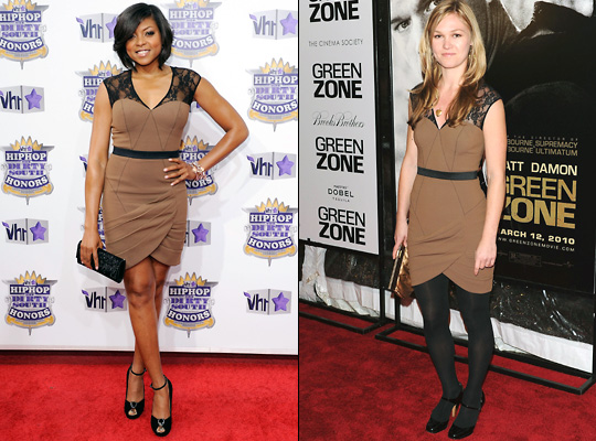 Taraji P. Henson aki mostanban a Person of Interest(Clszemly) cm sorozatban lthat ugyanolyan barna s fekete Tracy Reese ruhban jelent meg mint Julia Stiles a Green zone cm film premierjn.